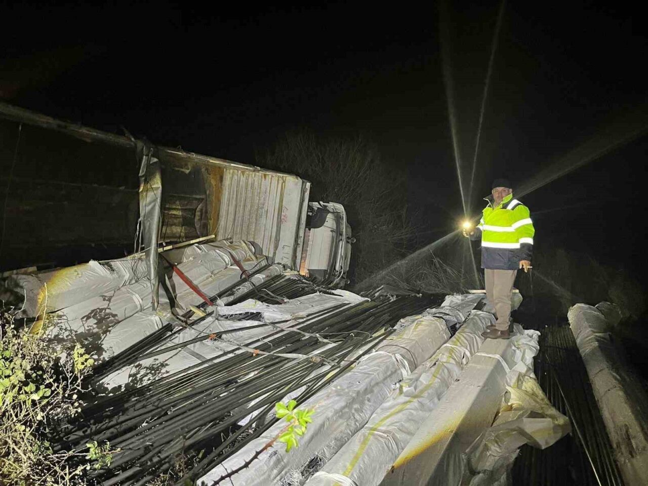 Bilecik’in Osmaneli ilçesinde direksiyon hakimiyetini kaybeden tır sürücüsü kaza yaptı.