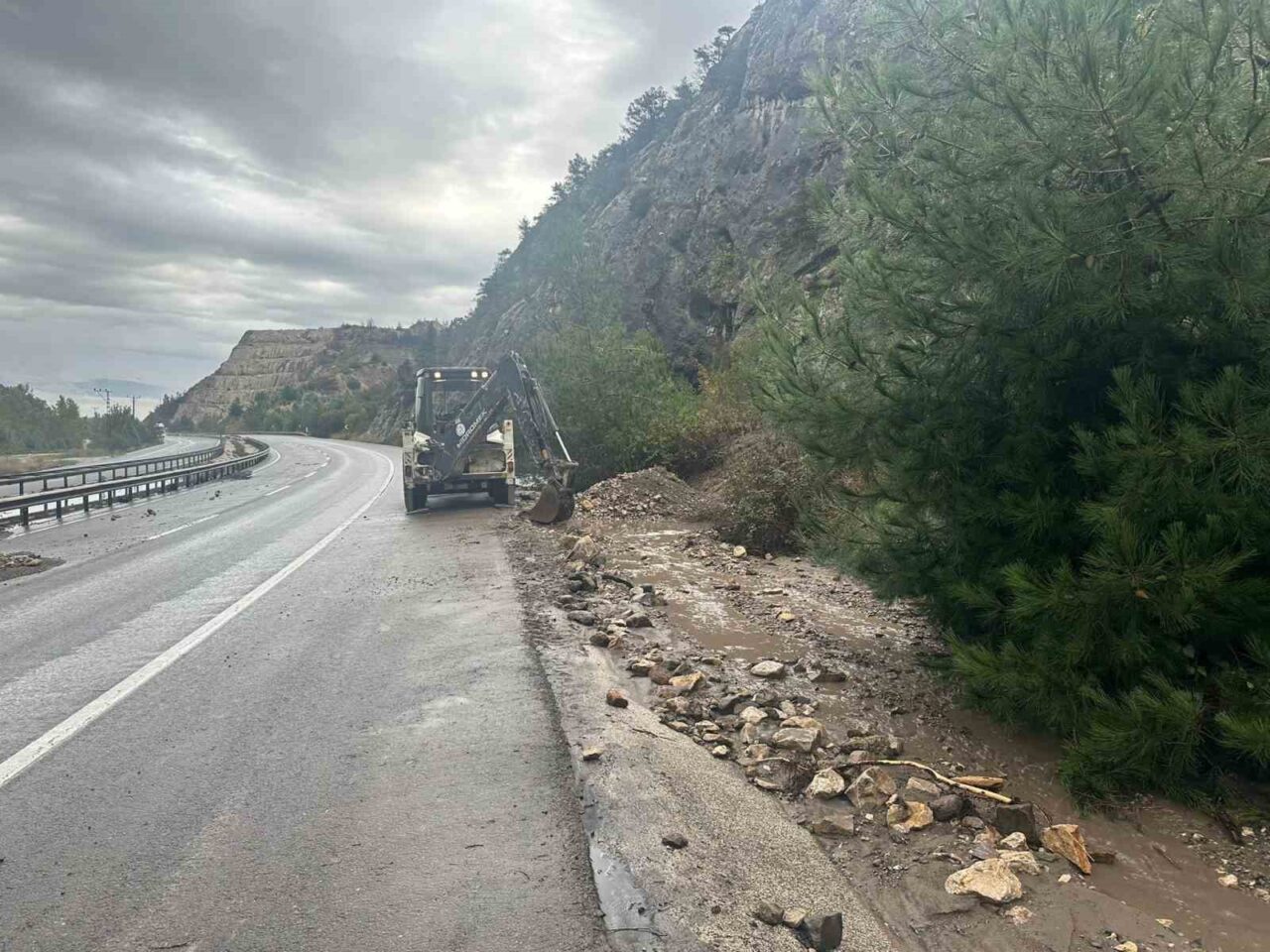 Bilecik’in Osmaneli ilçesinde etkili olan sel, D650 karayolunu taş ve toprakla kaplayarak sürücüler için zor anlar yaşattı.
