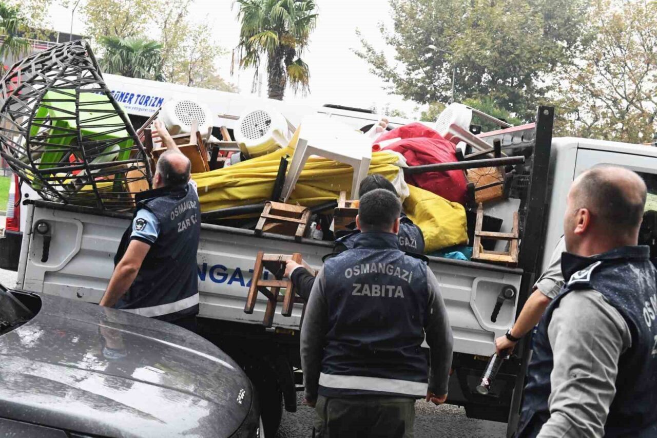 Yaya geçiş yolları için ayrılan alanların işgal edilmesine karşı sıkı önlemler alan zabıta ekipleri, masa, sandalye, şemsiye gibi malzemelerin yanı sıra, araç parkını engelleyen duba ve reklam flamalarına da el koydu. Osmangazi Belediyesi Zabıta Müdürlüğü, Kırcaali Mahallesi Kayalı Sokak’ta bulunan işletmelere yönelik gerçekleştirdiği son denetimde, yolları işgal eden malzemeleri kamyonete yükleyerek topladı.