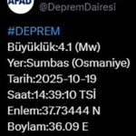 Osmaniye’nin Sumbas ilçesi, bugünkü 14.39 saatinde 4.1 büyüklüğünde bir sarsıntı ile sarsıldı.
