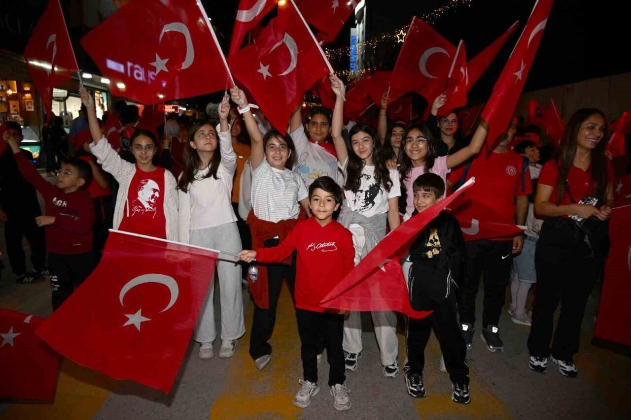 Kutlamalar, Atatürk Caddesi’nde yer alan eski belediye binası önünde protokol üyeleri, öğrenciler ve çok sayıda vatandaşın bir araya gelmesiyle başladı. Ellerinde Türk bayraklarıyla dolup taşan kalabalık, 2023 Açık Hava Müzesi’ne kadar coşkuyla yürüdü. Etkinliğe katılan izcilik kulübü öğrenci üyeleri, meşaleleriyle yürüyüşe ayrı bir renk kattı.