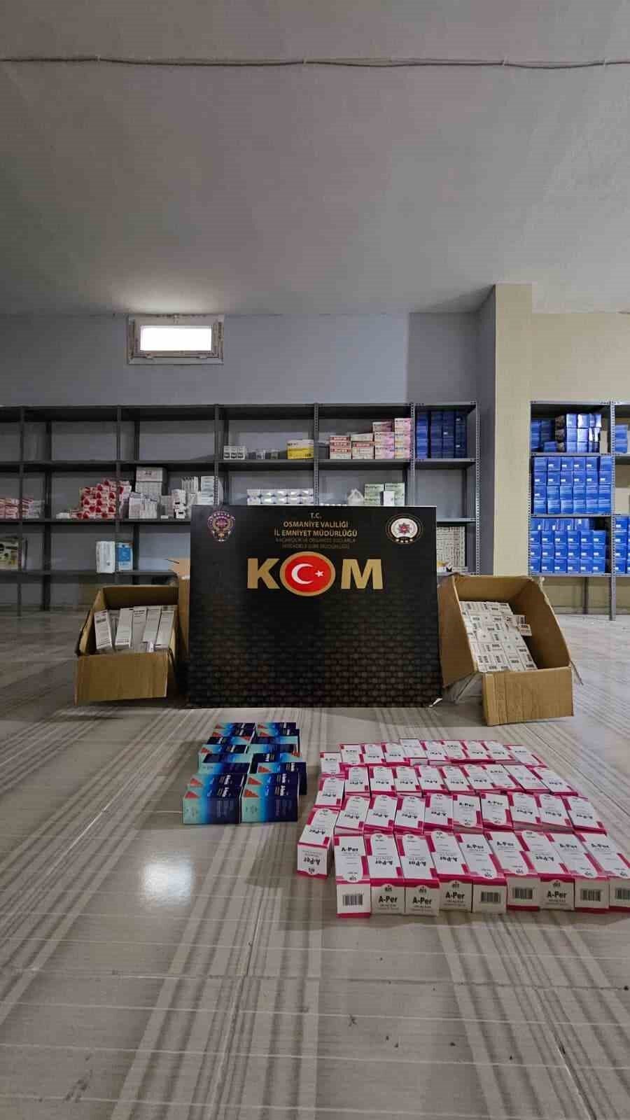 Osmaniye’de gerçekleştirilen bir operasyon neticesinde, piyasa değeri yaklaşık 2,5 milyon TL olan 250 bin adet kaçak ilaç bulundu.