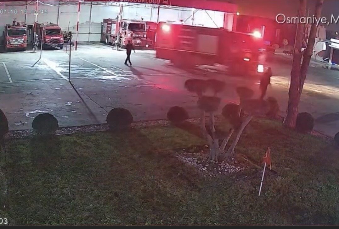 Osmaniye’de itfaiye ekipleri, dinlenme sırasında Galatasaray-Fenerbahçe Süper Kupa Finali’ni izledikleri esnada bir yangın ihbarı aldı. Çalan sirenle yerlerinden fırlayan personel hızla araçlara yöneldi. Kısa sürede hazırlanan ekipler, ihbarın geldiği adrese müdahale etmek üzere istasyondan çıkış yaptı. O anlar, istasyonun güvenlik kamerasına da yansıdı.