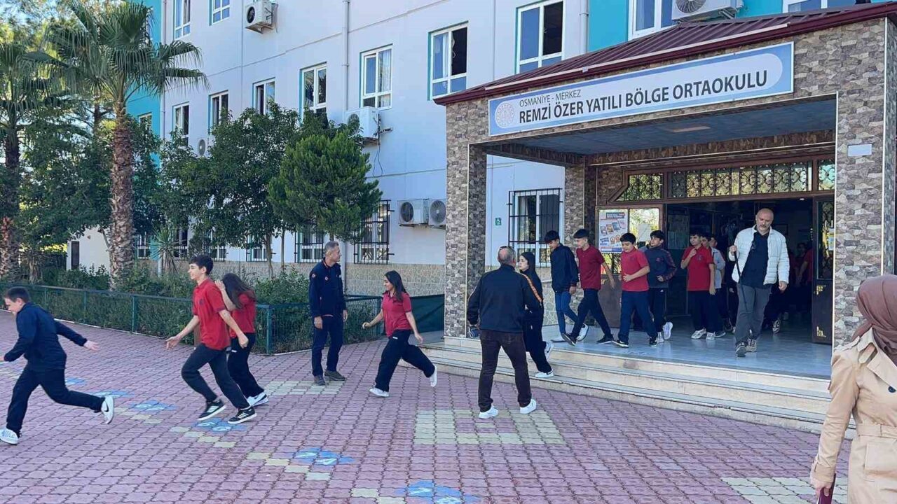 Osmaniye’de okullarda öğrencilere yönelik düzenlenen deprem ve yangın tatbikatı, afetlere karşı farkındalığı artırmayı amaçlıyor.