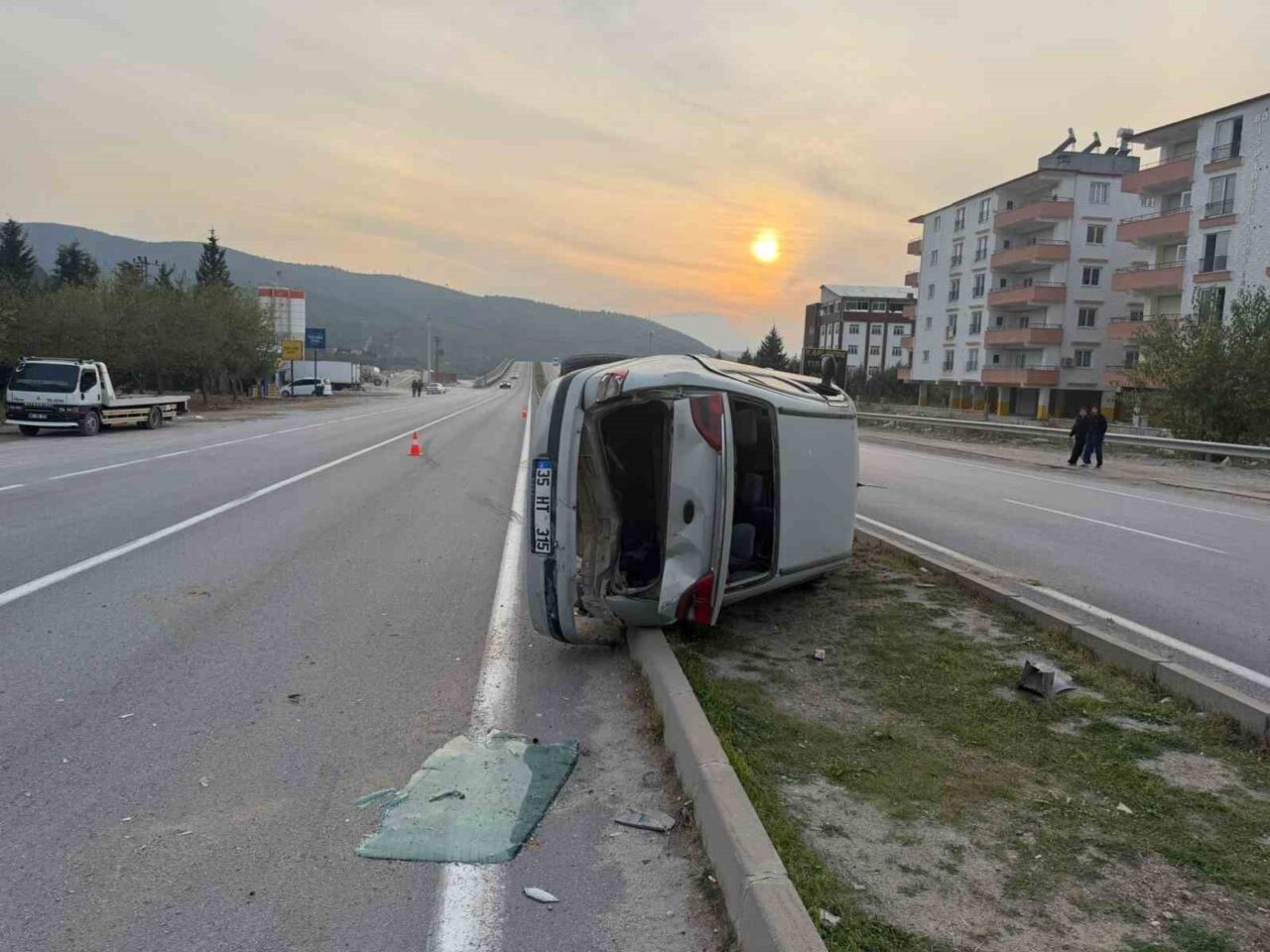 Cumhuriyet Mahallesi Sanayi Kavşağı’nda yaşanan kaza, sürücüsü henüz belirlenemeyen 60 ABS 816 plakalı otomobilin, önünde ilerleyen 35 HT 315 plakalı araca çarpması ile gerçekleşti. Çarpmanın etkisiyle kontrolünü kaybeden otomobil, takla atarak refüje düştü. Olayda araçtaki iki kişi çeşitli yaralanmalarla karşı karşıya kaldılar.