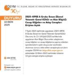 ÖSYM, KPSS A Grubu Sınavı’na ait cevap kağıtları ve aday yanıtlarının bu günden itibaren 10 gün süreyle erişime sunulacağını bildirdi. Yapılan açıklamada, “2025-KPSS A Grubu Sınavı (Genel Yetenek-Genel Kültür ve Alan Bilgisi) cevap kağıtları ve adayların yanıtları erişime alınmıştır.” ifadeleri yer aldı.