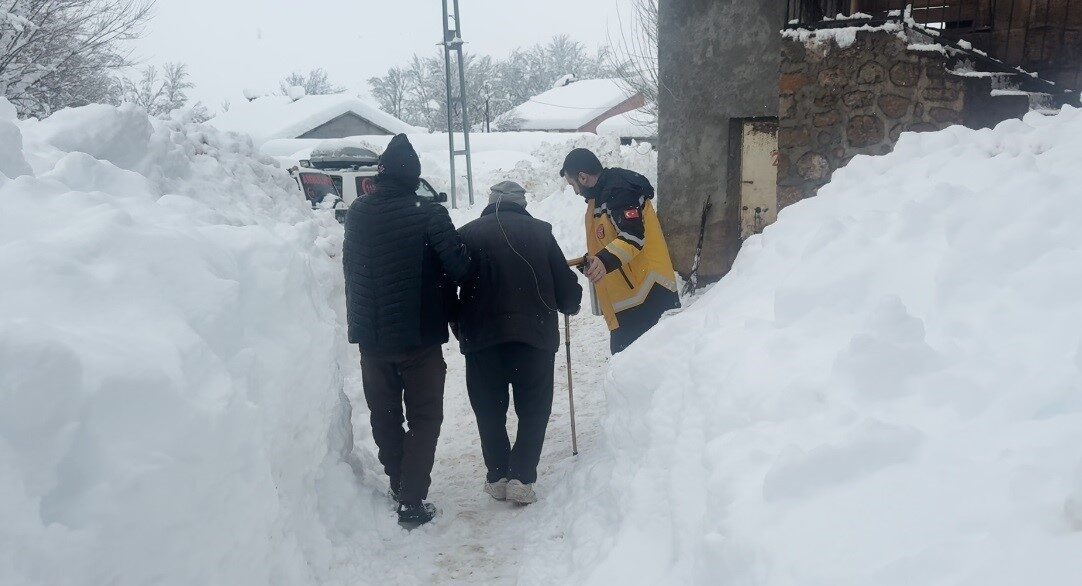 Kar kalınlığının 145 santimetreyi aştığı Tunceli’nin Ovacık ilçesinde rahatsızlanan 87 yaşındaki hasta, ekiplerin yaklaşık 2 saatlik çalışmasıyla hastaneye ulaştırıldı.