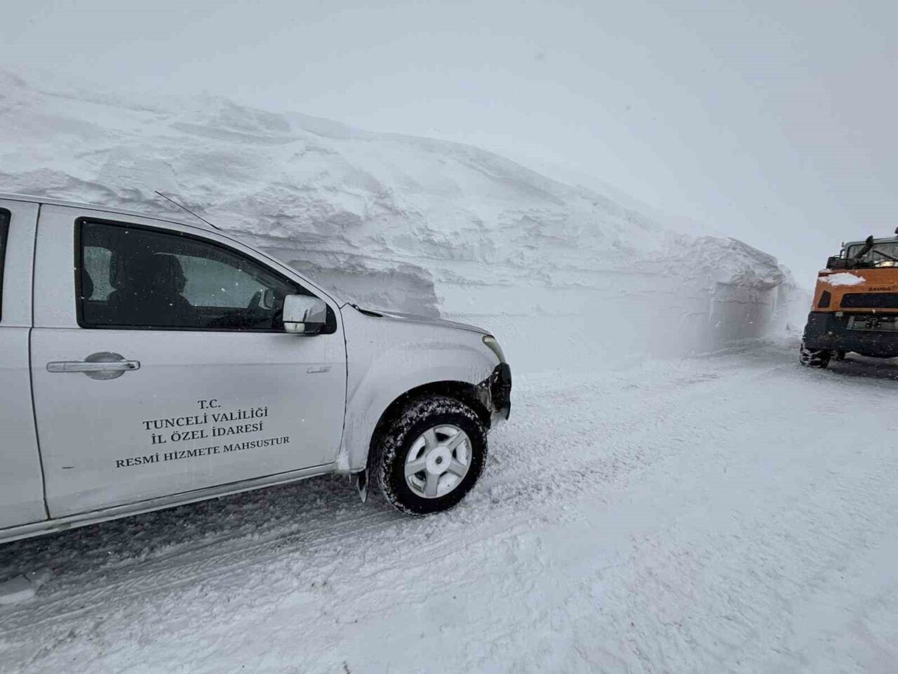 Ovacık’taki Mercan Grup Köy Yolu’nda kar kalınlığı 3,5 metreye ulaşırken, ekipler ulaşım için çalışıyor.