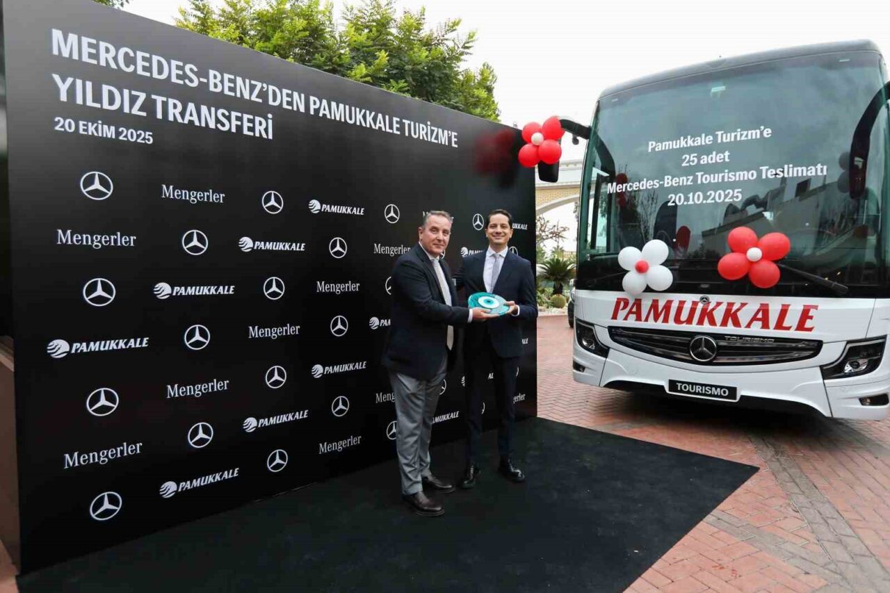 Mengerler İstanbul Genel Müdürü Güven Onan ise konuşmasında, “Pamukkale Turizm’in filosuna katılan 25 adet Mercedes-Benz Tourismo 16 RHD 2+1 otobüsümüzün teslimatında bulunmak büyük bir mutluluk kaynağı. Mengerler olarak, Mercedes-Benz markasını müşterilerimizle buluşturmaktan gurur duyuyoruz. Bu teslimat, hem Mercedes-Benz Türk’ün üretim gücünü hem de Pamukkale Turizm’in geleceğe yönelik çalışmalarını yansıtan bir örnek teşkil ediyor. Pamukkale Turizm, sektörde güvenli ve konforlu hizmet anlayışının en önemli temsilcilerinden biri. Teslim ettiğimiz yeni otobüsler, bu başarı hikayesinin devam etmesine katkıda bulunacaktır” dedi.