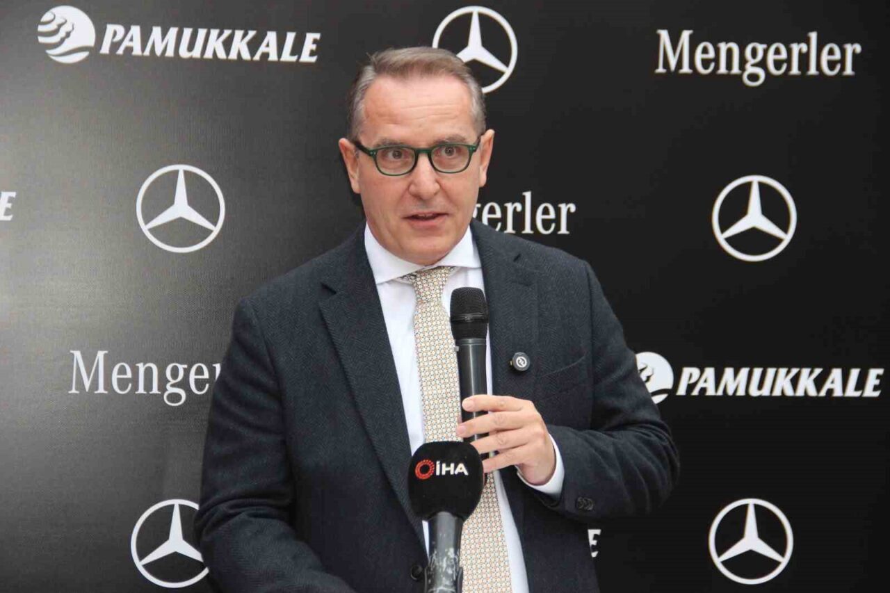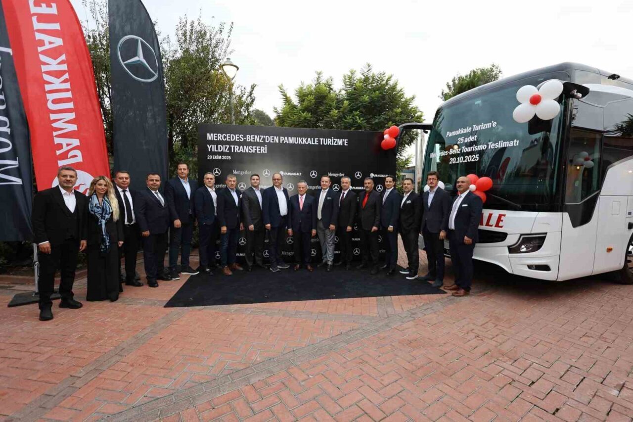Mengerler İstanbul Genel Müdürü Güven Onan ise konuşmasında, “Pamukkale Turizm’in filosuna katılan 25 adet Mercedes-Benz Tourismo 16 RHD 2+1 otobüsümüzün teslimatında bulunmak büyük bir mutluluk kaynağı. Mengerler olarak, Mercedes-Benz markasını müşterilerimizle buluşturmaktan gurur duyuyoruz. Bu teslimat, hem Mercedes-Benz Türk’ün üretim gücünü hem de Pamukkale Turizm’in geleceğe yönelik çalışmalarını yansıtan bir örnek teşkil ediyor. Pamukkale Turizm, sektörde güvenli ve konforlu hizmet anlayışının en önemli temsilcilerinden biri. Teslim ettiğimiz yeni otobüsler, bu başarı hikayesinin devam etmesine katkıda bulunacaktır” dedi.