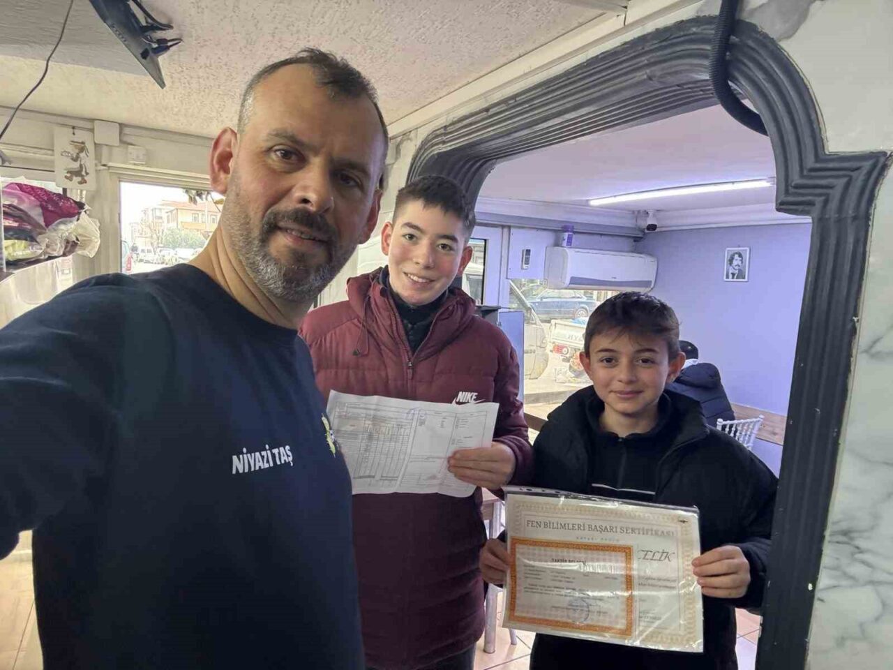 Sakarya’nın Pamukova ilçesinde bir işletmeci, eğitim öğretim yılının ilk döneminin tamamlanmasıyla takdir ve teşekkür belgesi alan öğrencilere bedava tavuk döner ikram etti.