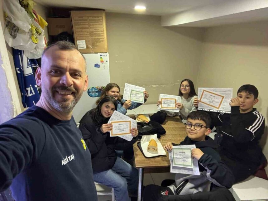 2025-2026 eğitim öğretim yılının birinci dönemi sona erdi. Sakarya’da 793 okulda eğitim gören 200 binden fazla öğrenci, karnelerini alarak yarıyıl tatiline girdi. Bu çerçevede Pamukova ilçesinde döner işletmecisi olan Niyazi Taş, takdir ve teşekkür belgesi alan öğrencileri unutmadı. Dönerciye belgeleriyle gelen onlarca öğrenciye döner ikram edildi. Etkinlikte öğrenciler büyük ilgi gösterdi. Öğrencilere her yıl karne günü etkinliği düzenlediğini vurgulayan Taş, “Bu senede 2025-2026 eğitim öğretim yılının ilk dönemini tamamladık. Biz de başarılı öğrencileri ödüllendirmek adına her dönem yaptığımız gibi belge alan öğrencilerimizi belgeleriyle gelebildiği sürece döner ve ayran ikramı olacak” diye konuştu.