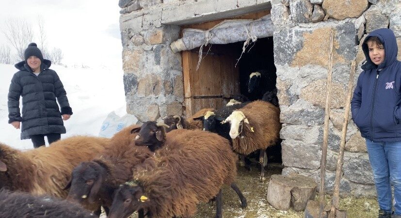 Bu yıl yoğun bir kar yağdığını belirten Menekşe Sevinç, “Koyunlara ot vermek için alanı kardan temizliyorum. Bu sene kar yoğun bir şekilde yağdı. Biraz fazla eziyet çektik ama değdi. Günde 2 kez hayvanları dışarı çıkartıp yem veriyoruz. Zor olsa da bunu yapmak zorundayız” dedi.