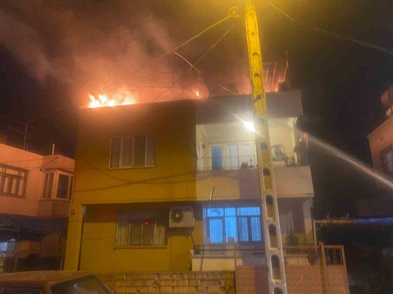 Hatay’ın Payas ilçesinde 2 katlı müstakil evin damında çıkan yangında alevler yükseldi. Yangın, evi sarmadan itfaiye ekipleri tarafından söndürüldü.