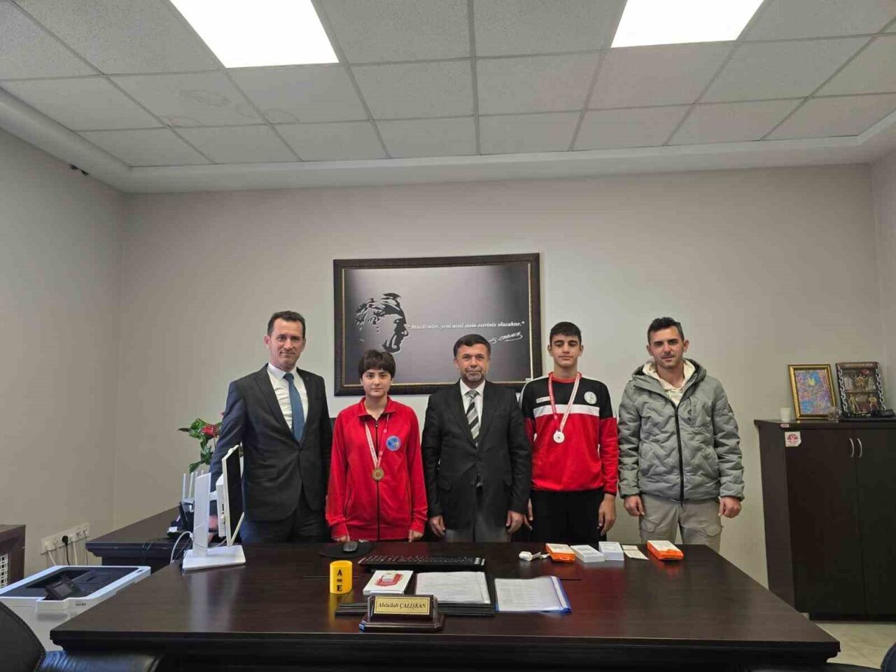 Pazarlar Spor Lisesi, 2025-2026 eğitim-öğretim yılına damgasını vurmaya devam ediyor. “85 Öğrenci ile 85 Madalya” sloganıyla yola çıkan Pazarlar Spor Lisesi, katıldığı branşların henüz yarısında 50 madalya ve kupa kazanarak büyük bir rekora imza attı. Şampiyon öğrenciler; İlçe Milli Eğitim Müdürü Abdullah Çalışkan, Okul Müdürü Muammer Gökalp ve Beden Eğitimi Öğretmeni Osman Erdinç ile birlikte ilk olarak Pazarlar Kaymakamı Alper Açıkgöz’ü makamında ziyaret etti. Kaymakam Açıkgöz ve İlçe Milli Eğitim Müdürü Çalışkan, başarılı sporcuları tebrik ederek çeşitli hediyelerle ödüllendirdi.