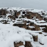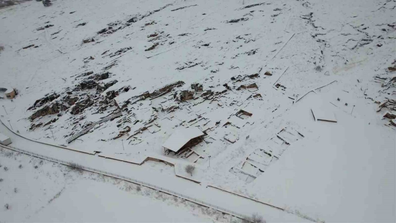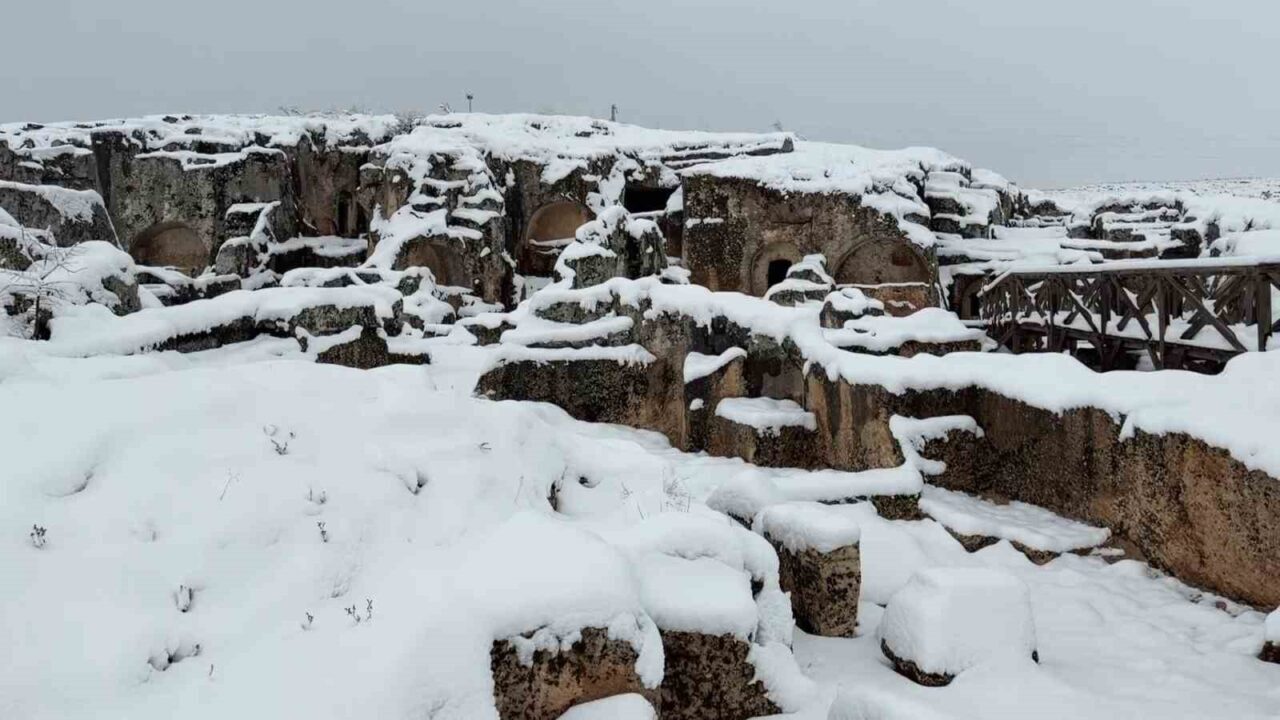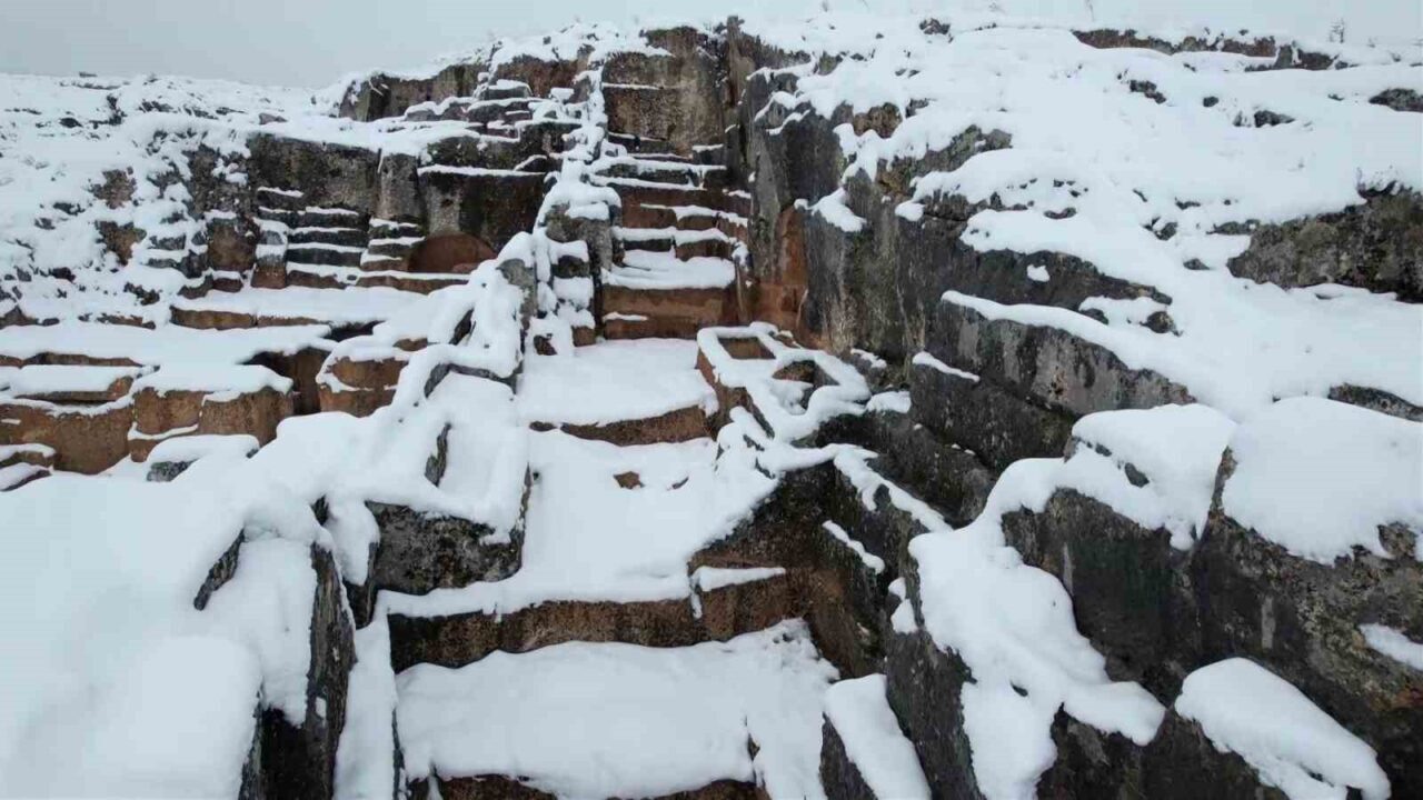 Kommagene Uygarlığı’nın 5 büyük kentinden biri olarak bilinen Perre Antik Kenti, Adıyaman’da etkili olan kar yağışıyla birlikte beyaz bir örtüyle bürünüp eşsiz bir manzaraya sahne oldu.