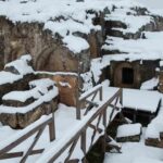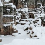 Perre Antik Kenti’nin kayalara oyulu mezar yapıları, tarihi taş yolları ve kalıntıları karla birlikte daha da dikkate değer hale geldi.