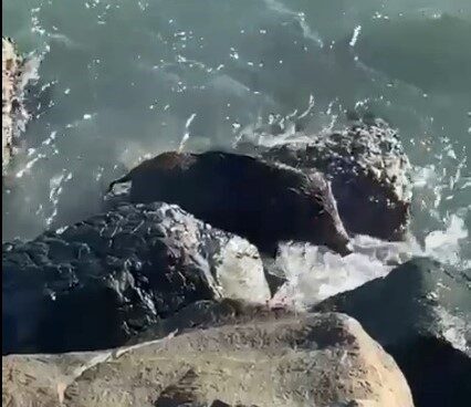 ORDU’NUN PERŞEMBE İLÇESİNDE DENİZE GİREN BİR YABAN DOMUZU, KIYIYA YAKIN BÖLGEDE VATANDAŞLAR TARAFINDAN GÖRÜNTÜLENDİ.
