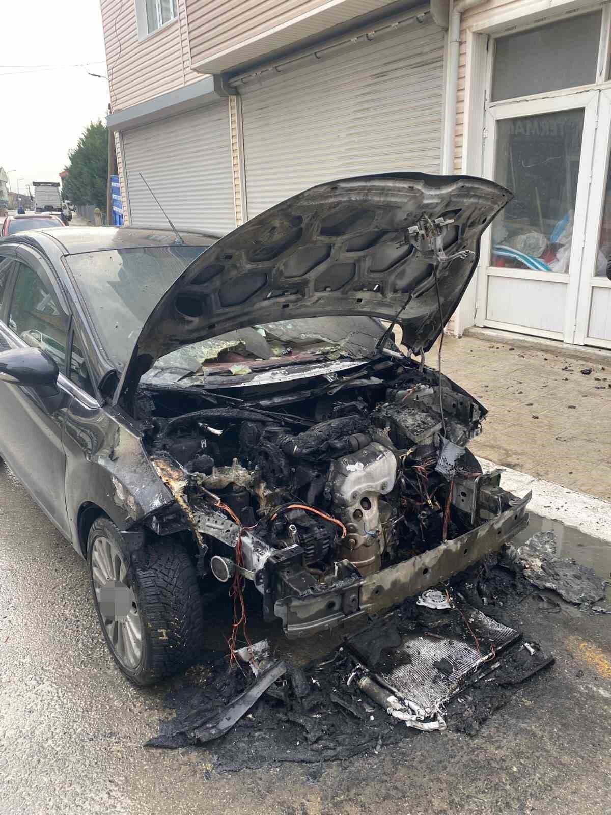 Kırklareli’nin Pınarhisar ilçesinde park halindeyken motor kısmından alev alan otomobil, itfaiye ekiplerinin müdahalesiyle söndürüldü.