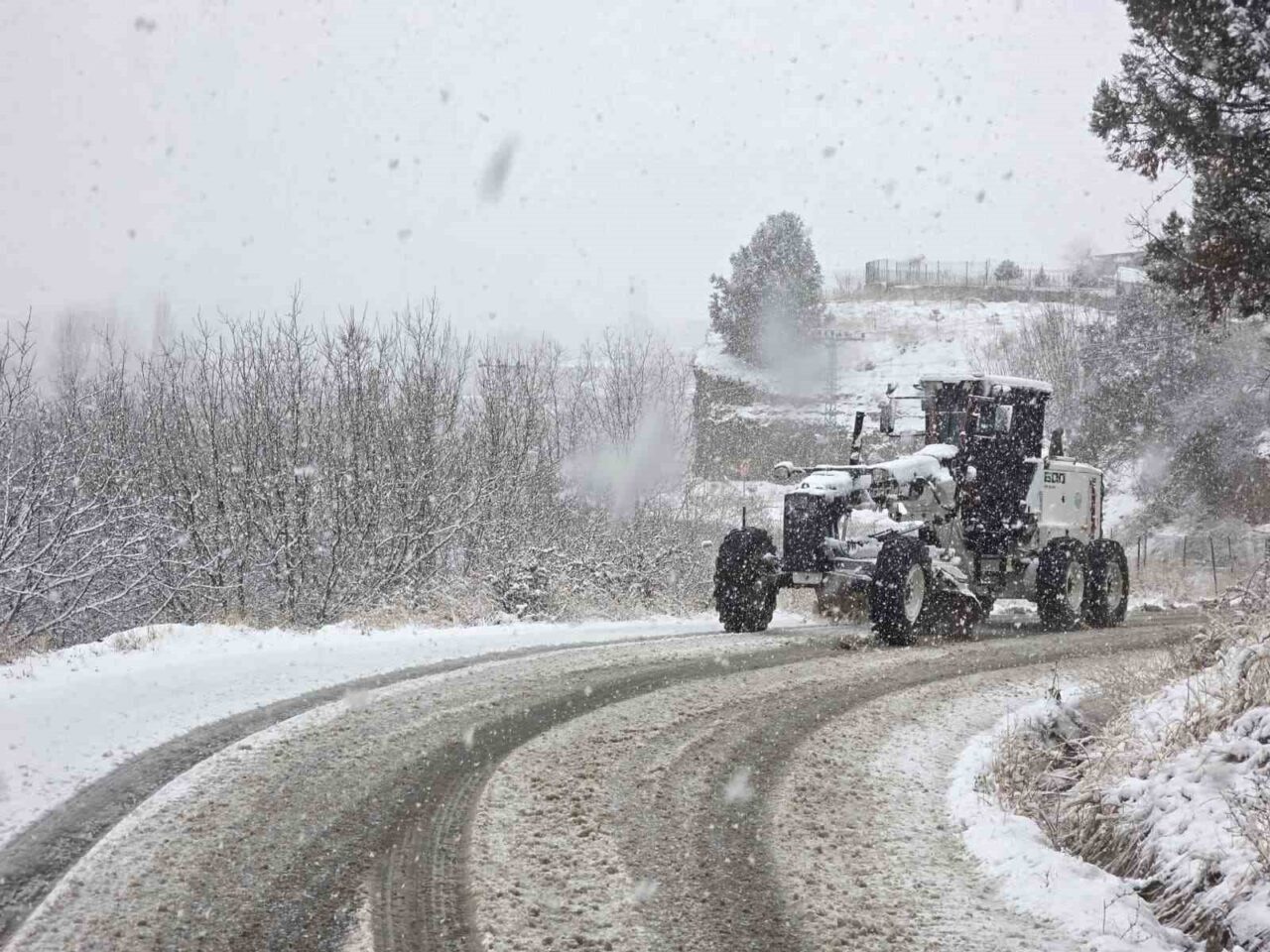 Pozantı’da kar yağışı etkili oldu, yollar için çalışmalar başlatıldı.