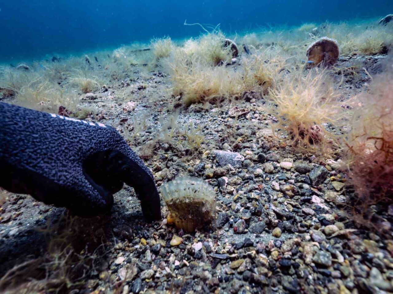 Sarı, İzmit Körfezi girişinde Eskihisar Kalesi dibinde, kıyı dolgularından kurtulabilmiş küçük bir alanda hem deniz çayırı hem de oldukça yoğun pina (Pinna nobilis) popülasyonuna rastladıklarını belirterek, “Neredeyse her metrekarede 3-4 pina var.” dedi.