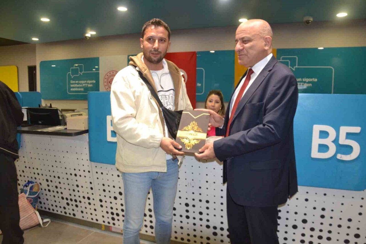 Ehliyet yenileme harcını yatırmak için gişe numarasını alan İbrahim Kandemir, “Ptt’nin 185. yılı olduğunu bilmiyordum; bu bilgi aklımda kalacak. Müdür Bey ve basın mensuplarının ilgisi beni çok heyecanlandırdı. Verilen hediyeler için Suat Bey ve Ptt’ye teşekkür ediyorum. 185. yılınız kutlu olsun.” ifadelerini kullandı.
