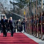 Bugün Intımak-Ordo Cumhurbaşkanlığı Sarayı’nda Vladimir Putin için resmi bir tören düzenlendi. Putin’in konvoyu, geleneksel kıyafetler giymiş atlı birliğin eşlik ettiği sırada törensel alana girdi. Tören alanında, iki ülkenin bayraklarının dalgalandığı yerlerde, geleneksel savaş kıyafetleri giymiş askerler hazır bulundu.
