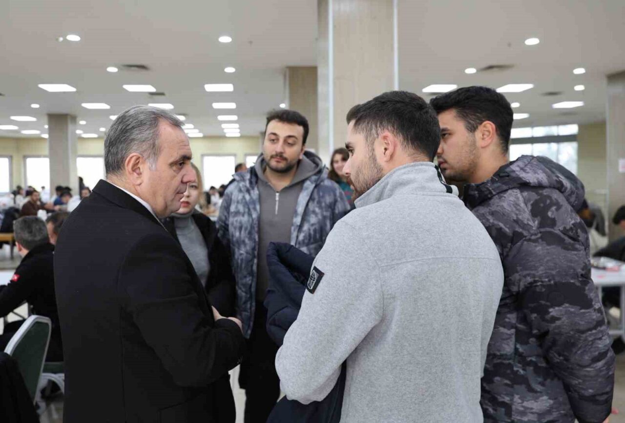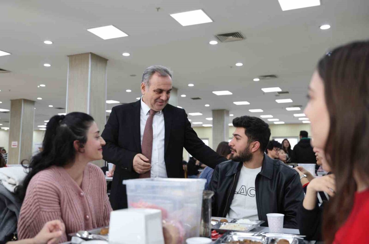 Öğrenci yemekhanesinde gerçekleştirilen buluşmada, Rektör Prof. Dr. Fatih Altun, yemek öncesi masaları tek tek dolaşarak öğrenciler ile sohbet etti. Tabldotta öğle yemeği yiyen Rektör Altun, yemek sırasında öğrencilerin taleplerini ve isteklerini dinledi. Bu yemekte Rektör Prof. Dr. Fatih Altun’a; Rektör Yardımcıları Prof. Dr. Oktay Özkan, Prof. Dr. M. Hakan Poyrazoğlu ve Prof. Dr. Cevdet Kırpık, Genel Sekreter Prof. Dr. İbrahim Narin, Genel Sekreter Yardımcıları Prof. Dr. Afşın Alper Cerit ve Dr. Oktay Musa Kayırga, İlahiyat Fakültesi Dekanı Prof. Dr. Ahmet Kamil Cihan ve hayırsever Mehmet San da eşlik etti.