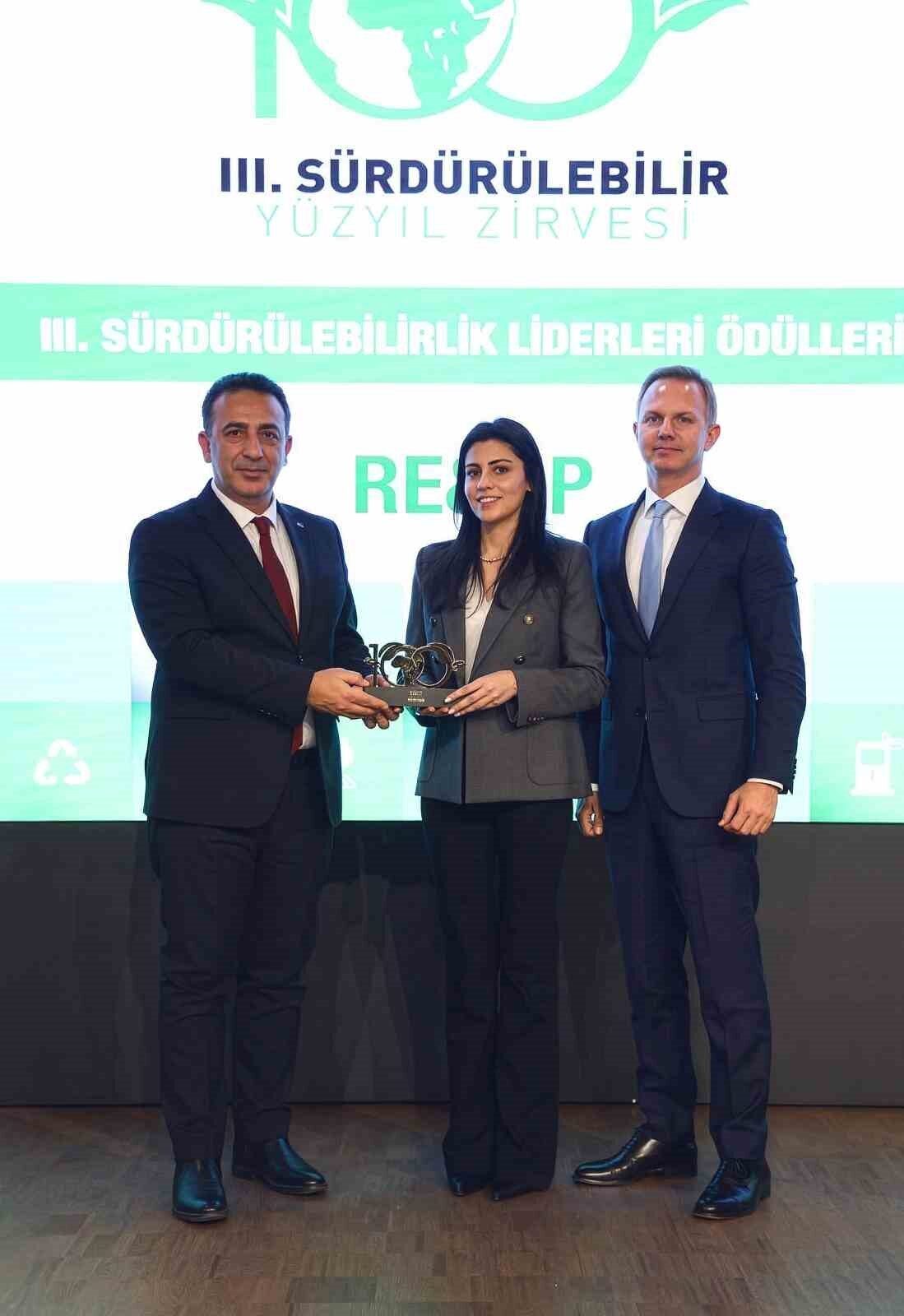 Sürdürülebilirlik alanında iyi uygulamalar geliştiren, dönüşüme öncülük eden kurum ve liderlerin değerlendirildiği ödüller, III. Sürdürülebilir Yüzyıl Zirvesi kapsamında düzenlenen törende sahiplerini buldu. Törende ödül, T.C. Çevre, Şehircilik ve İklim Değişikliği Bakanlığı İklim Değişikliği Başkanı Prof. Dr. Halil Hasar tarafından RE&UP Büyüme ve Stratejiden Sorumlu Direktörü Engin Mete ile Büyüme ve Stratejiden Sorumlu Kıdemli Yöneticisi Gözde Konukoğlu’na takdim edildi.