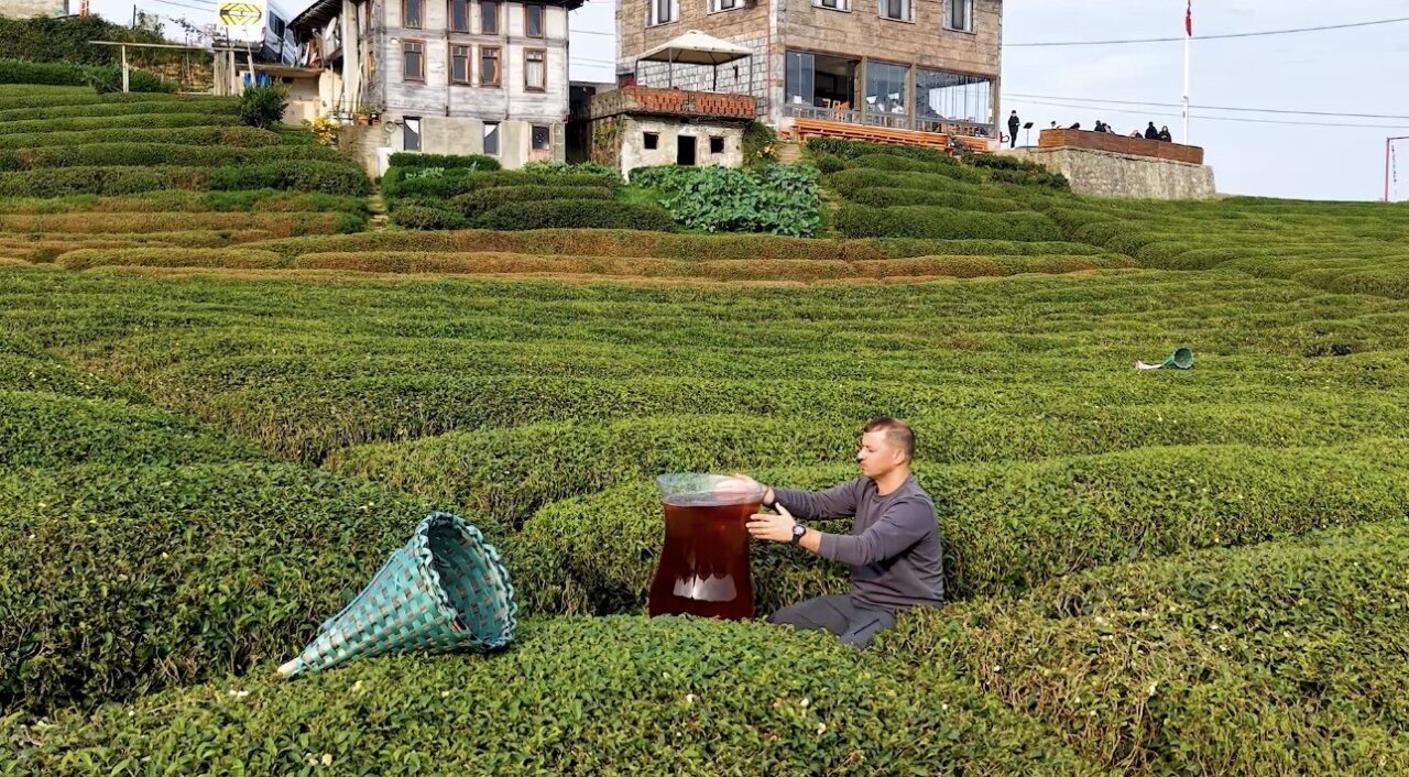 Rize’de Dev Çay Bardağıyla Çekim Gündem Oldu