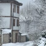 Karabük’ün Safranbolu ilçesinde etkili olan kar yağışı, UNESCO Dünya Miras Listesi’nde yer alan tarihi konakları beyaza bürüdü.
