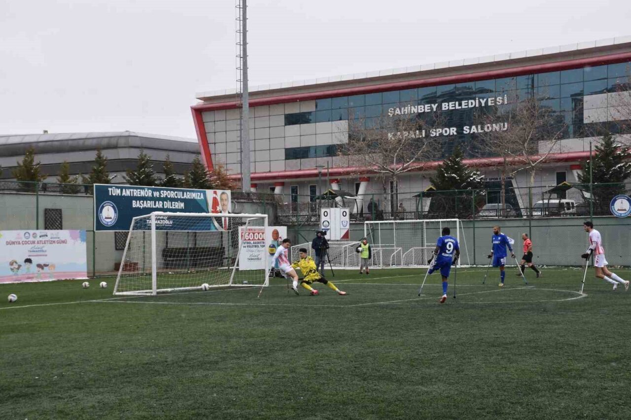 Şahinbey Belediye Spor Kulübü Ampute Futbol Takımı, kendi evinde TSK Rehabilitasyon Merkezi Engelli Spor Kulübü Ampute Futbol Takımı’nı 7-0 mağlup ederek şampiyonluk yolunda bir engeli daha aştı.