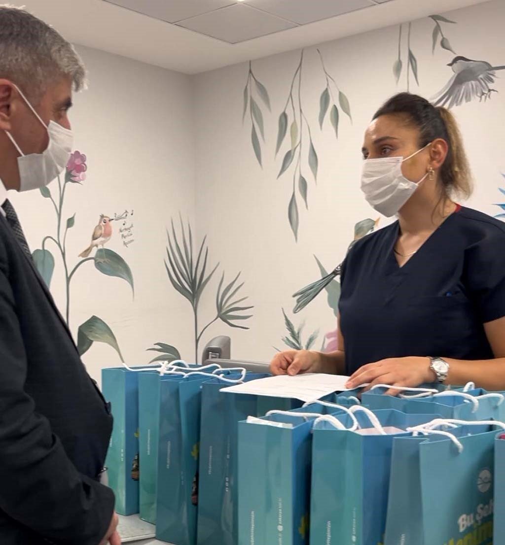 Bu anlamlı etkinlikte, tedavi süreci zorlu olan aileler de unutulmayarak, serviste ihtiyaç duyulan mikrodalga fırın ve çay semaveri gibi ürünlerle desteklendi. Yapılan bu jestler, ailelerin hayatını bir nebze olsun kolaylaştırmayı amaçladı.