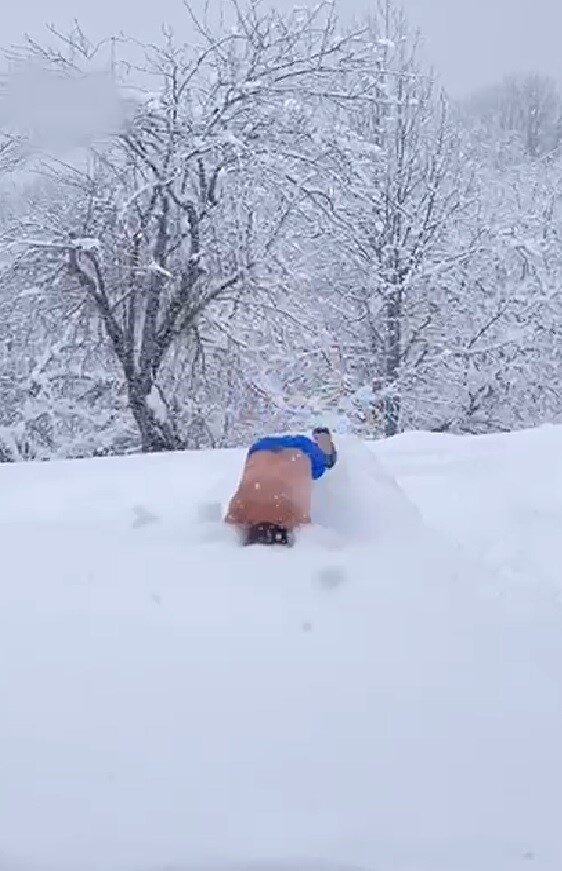 Sakarya’nın Hendek ilçesi Aksu Mahallesi’nin yüksek kesimlerinde yaşayan 36 yaşındaki Mesut Özkılıç, şortunu giyerek eksi 10 derece soğuğa aldırmadan 1 buçuk metre kalınlığındaki karların içerisinde kahkahalar eşliğinde yüzmeye çalıştı. Tanıdıkları, o anları cep telefonu ile kayıt altına aldı. Özkılıç, “Var mı benimle dereye gelecek olan, dereye dalıyorum” diyerek karla kaplanan evinin bahçesine atladı. Kara dalış yaptıktan sonra kar banyosu yapmayı da ihmal etmeyen Özkılıç, “Sıcak kar yağıyor, belki de inanmayacak” şeklinde konuştu.