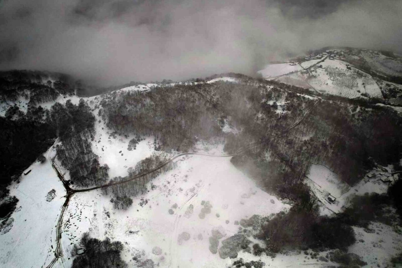 Meteoroloji Genel Müdürlüğü’nün uyarılarının ardından Sakarya’da etkili olan kar yağışıyla birlikte yüksek kesimlerde oluşan görüntü kendine hayran bıraktı.