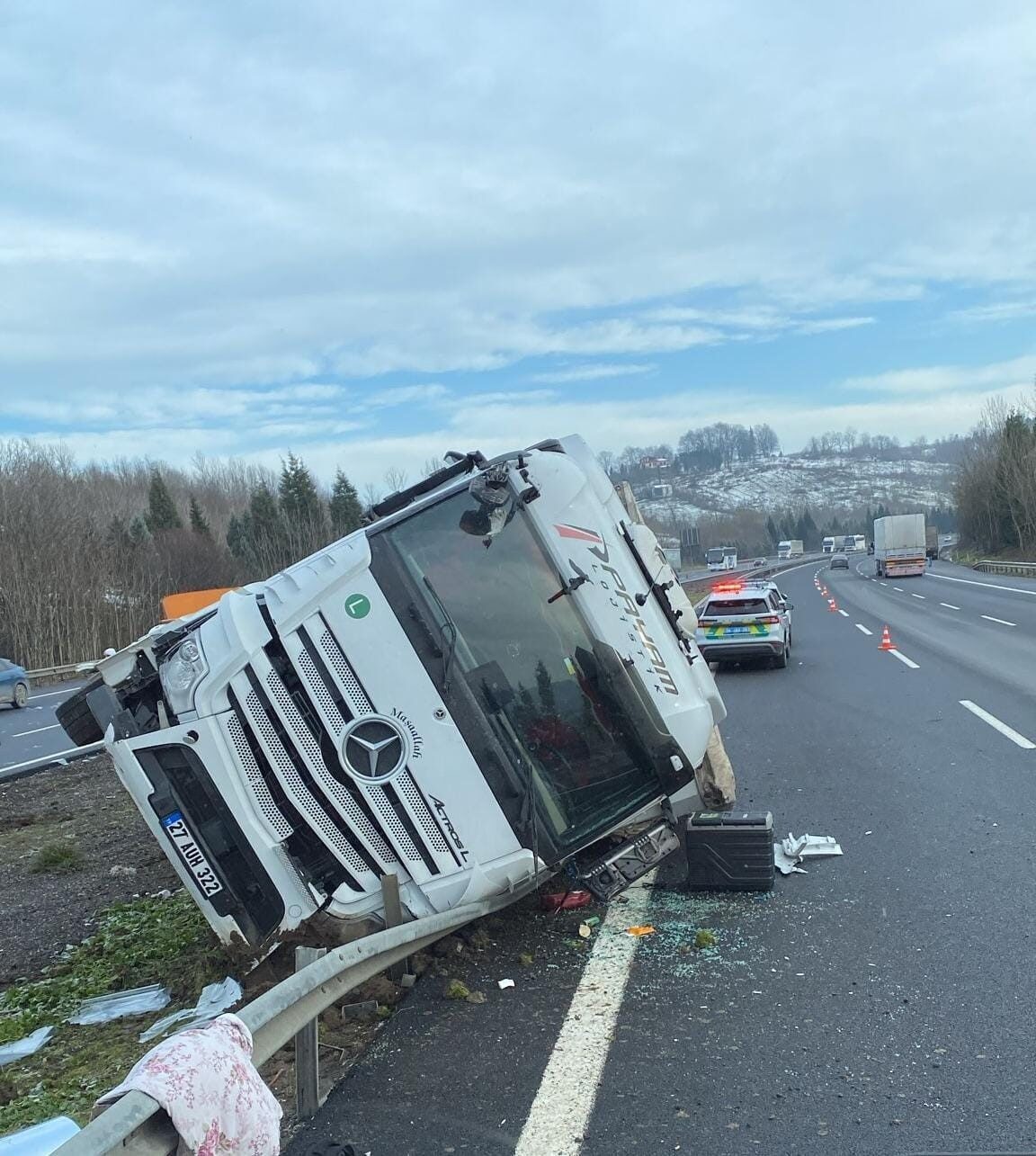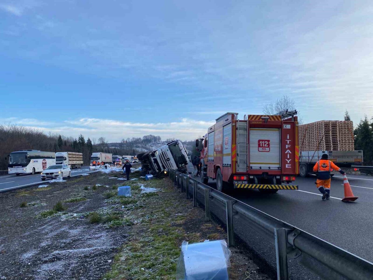 Anadolu Otoyolu Sakarya Geçişinde Kaza: Tır Yan Yattı, Sürücü Yaralandı