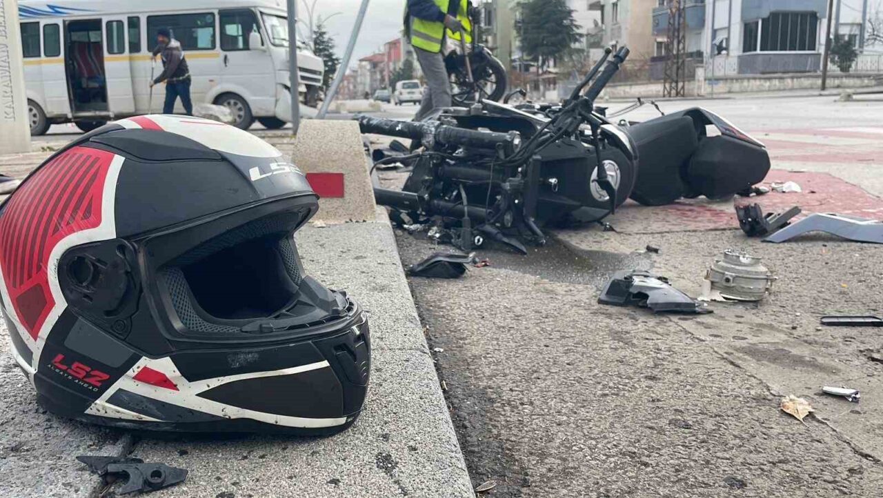 KARAMAN’DA SERVİS MİNİBÜSÜ İLE ÇARPIŞAN MOTOSİKLET PARAMPARÇA OLURKEN, SÜRÜCÜSÜ GENÇ KADIN AĞIR YARALANDI.