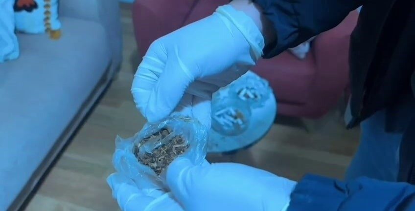Arama işlemleri, evler ve yanlarında bulunan alanlarda gerçekleştirildi. Ele geçirilenler arasında, 315,63 gram uyuşturucu yapımında kullanılan tütün, 2 adet 130 gram uyuşturucu, yapımında kullanılmış aseton, 113,58 gram sentetik cannabinoid, 20.13 gram A-M 2201 sentetik cannabinoid hammaddesi, 5.95 gram metamfetamin, 1 adet sentetik ecza, 1 hassas terazi ve uyuşturucuları paketlemek için kullanılan 3 şeffaf poşet yer aldı.