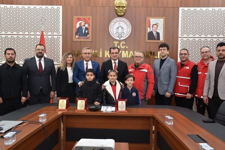 Manisa’nın Salihli ilçesinde 29 Ekim-4 Kasım Kızılay Haftası etkinlikleri kapsamında düzenlenen “Salihli Sana Kanım Feda” kan bağışı kampanyasında dereceye giren öğrenciler, Salihli Kaymakamı Ali Güldoğan’ı makamında ziyaret etti.