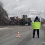 Trabzon’un Şalpazarı-Beşikdüzü karayolunda dün akşam saatlerinde başlayan şiddetli yağmurun ardından etkili olan kar yağışı nedeniyle heyelan meydana geldi.