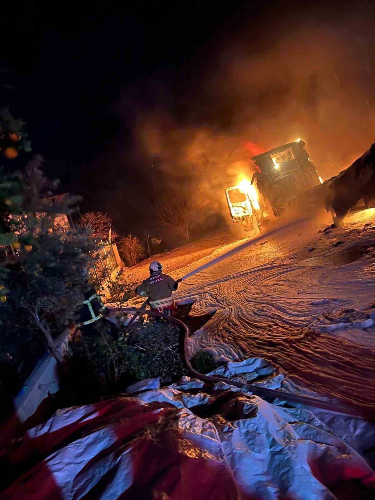 Yangın, gece saatlerinde Samandağ ilçesi Kurtderesi Mahallesi’nde meydana geldi. Seyir halinde olan tır, bilinmeyen bir nedenle yanarak alevler içinde kaldı. Alevler içinde kalan tırın yandığını gören vatandaşlar durumu 112 Acil Çağrı Merkezi’ne bildirdi. Olay yerine itfaiye ekipleri gönderildi. Kısa süre içinde bölgeye ulaşan Hatay Büyükşehir Belediyesi’ne bağlı itfaiye ekipleri yangına müdahale etti. Ekiplerin müdahalesiyle kontrol altına alınan yangında can kaybı ve yaralanma yaşanmazken, tır kullanılamaz hale geldi.