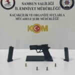 Şüphelilerin üzerlerinde ve araçlarında yapılan aramalarda 1 adet ruhsatsız tabanca, şarjörler ve çeşitli dijital materyaller ele geçirildi.