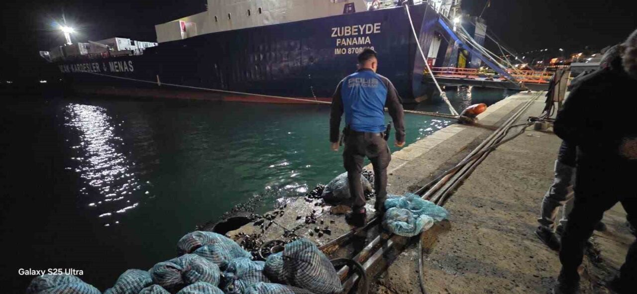 Narkotik Suçlarla Mücadele Şube Müdürlüğü ile Deniz Limanı Şube Müdürlüğü’ne bağlı ekipler, şüpheli bir kamyoneti durdurarak inceleme yaptı. Araçta yapılan aramada, doğal dengeyi tehdit eden ve yasal olmayan bir şekilde taşınan kara kıllı midyelerin bulunduğu belirlendi. Yakalanan yaklaşık 300 kilogram midye, gerekli yasal işlemlerin ardından doğal yaşam alanına, yani denize bırakıldı.