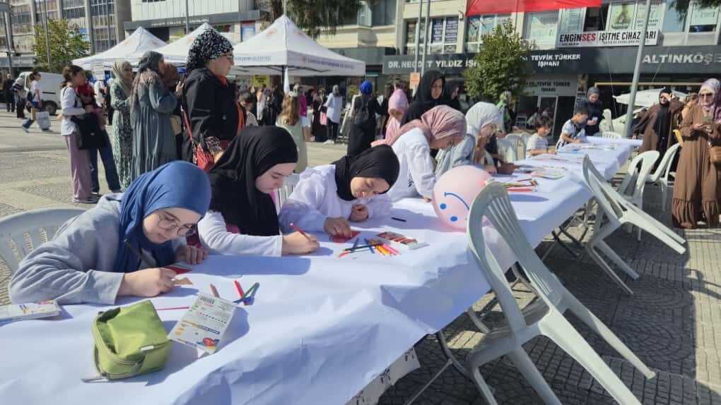 Etkinliğe katılan minik sanatçılar, “Bombalar değil, kitaplar konuşsun” ve “Savaşlar değil, barış kazansın” temalı mesajlarını renkli kalemlerle kâğıda döktü. Çocuklar, Gazze’deki kardeşlerinin acılarını unutmayarak barış çağrısı yapmak için bir araya geldi.