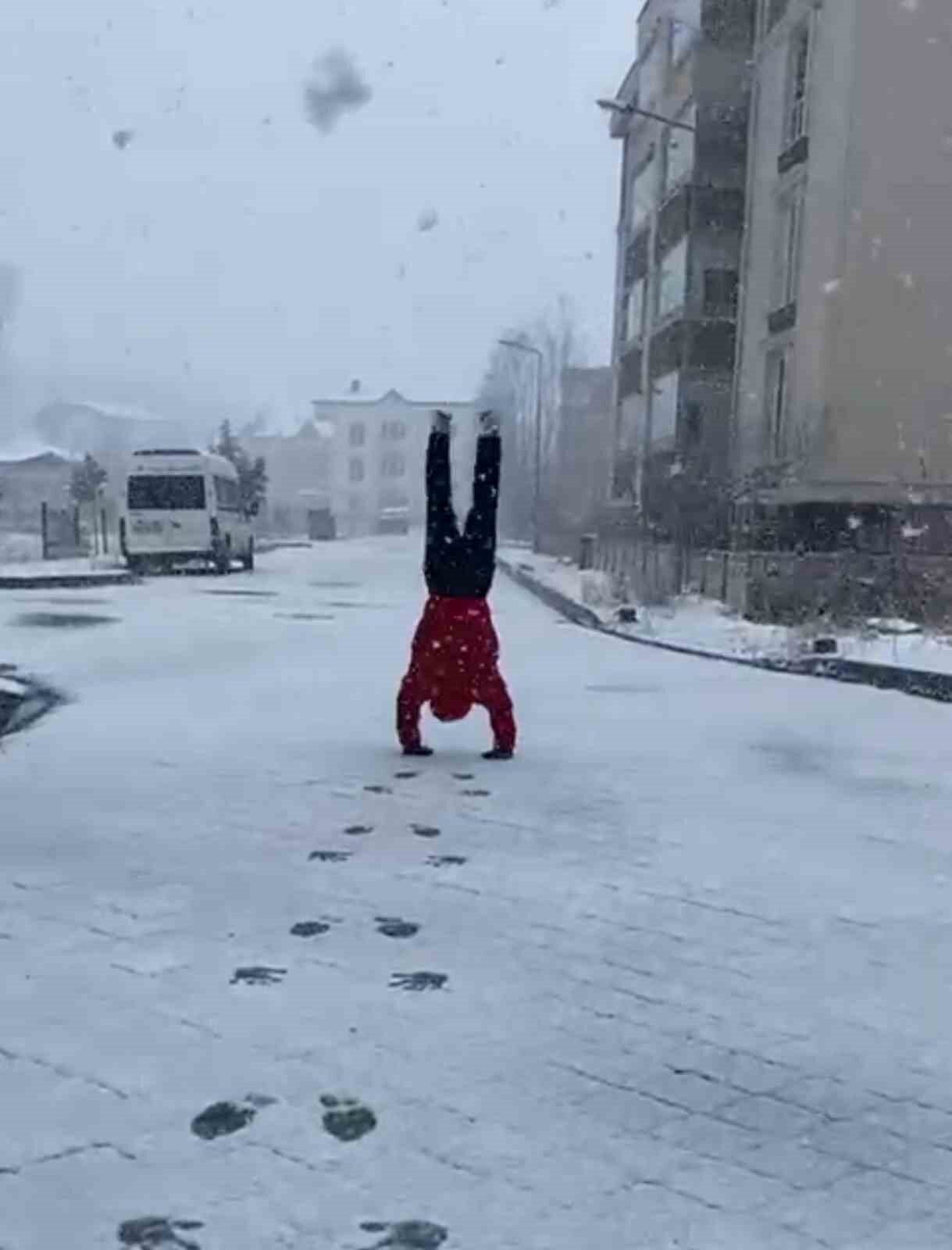 Kar yağışını çok sevdiğini ifade eden Osman Ismak, “Terme’de kar yağışını görünce sevincimi bu şekilde göstermek istedim. Spor benim yaşam biçimim” dedi.