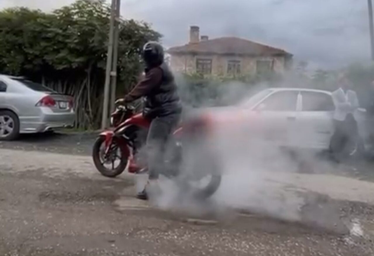 Samsun’un Çarşamba ilçesinde motosiklet sürücüsünün durduğu yerde duman çıkararak sürüş kurallarını ihlal ettiğine dair sosyal medyada paylaşılan görüntüler, polis tarafından incelendi ve tespit edildi.