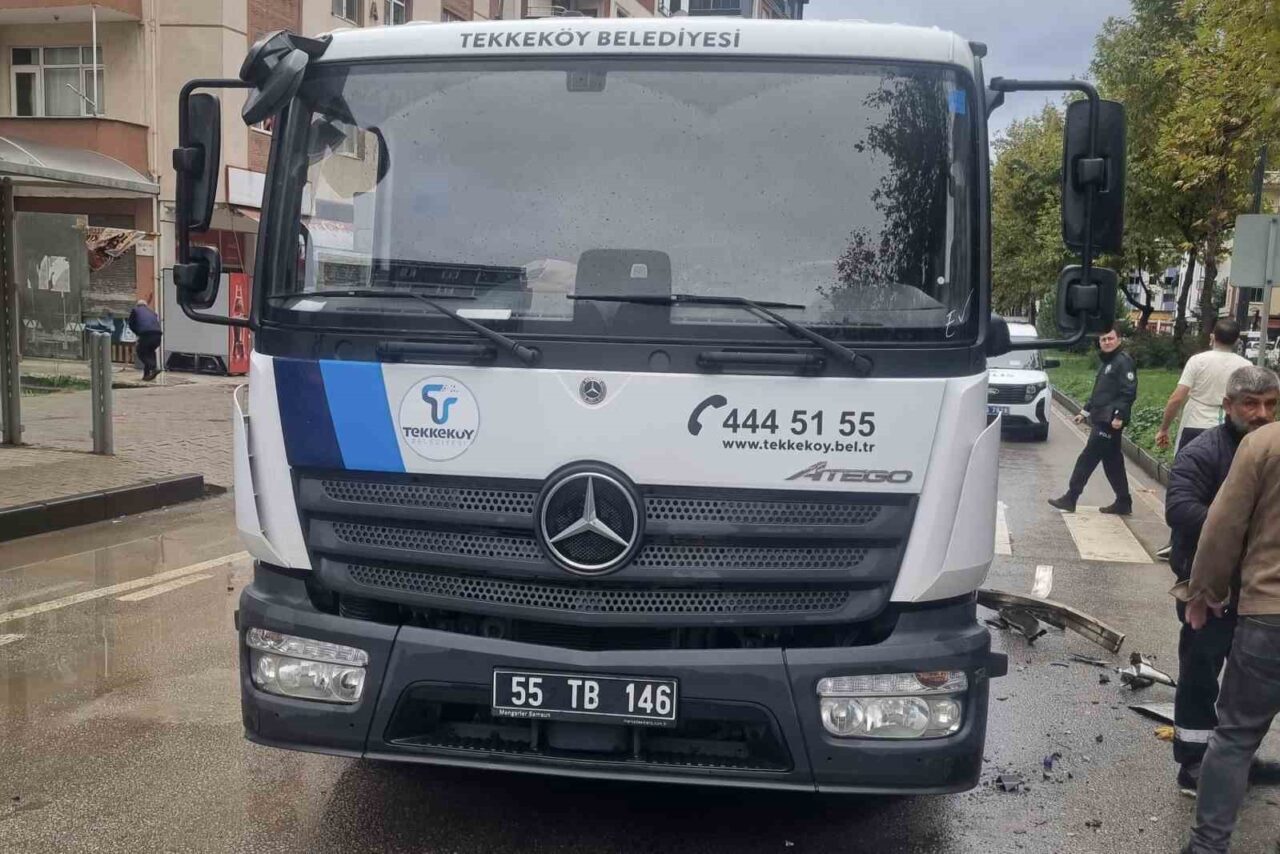Samsun’da Çöp Kamyonuna Çarpan Otomobilde Bir Yaralı