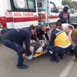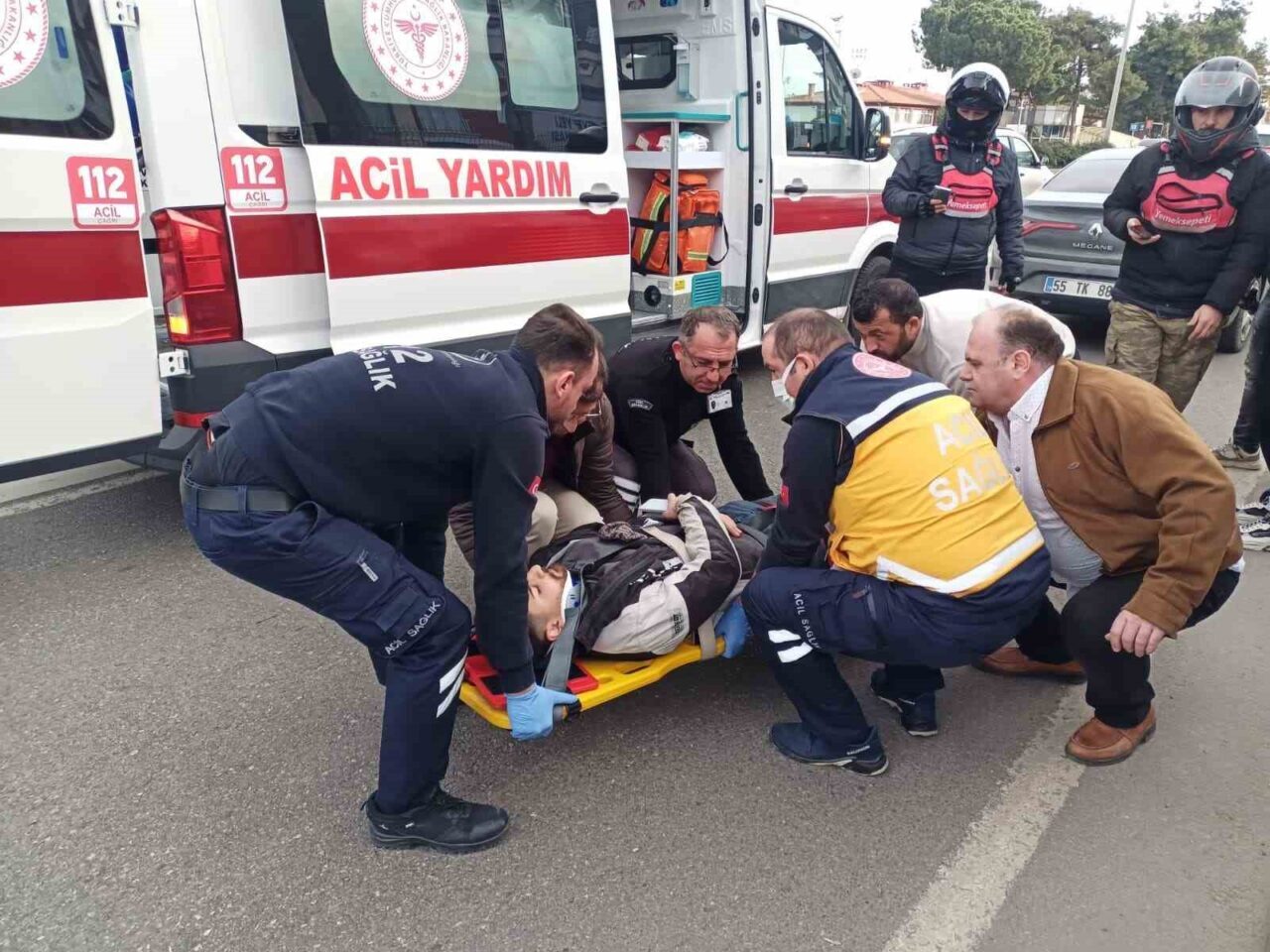 Samsun’da raylı sistem hattı duvarına çarpan motokurye yaralandı.