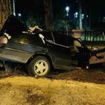 Samsun’un Terme ilçesinde kontrolden çıkan otomobil, önce otobüs durağına ardından ağaca çarptı.