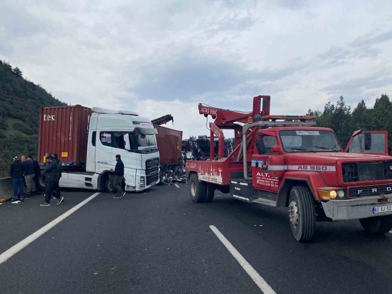 KAZADA KAPANAN E-90 OTOYOLU, ARAÇLARIN ÇEKİLMESİYLE TRAFİĞE AÇILDI